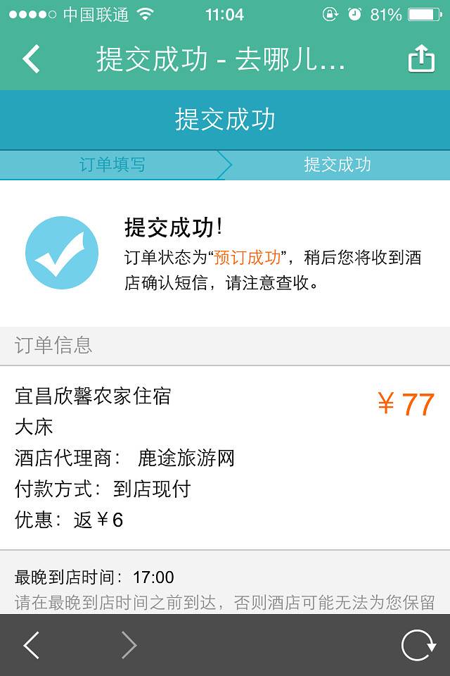 订完车票就立马在去哪儿里面定了自己中意的旅馆