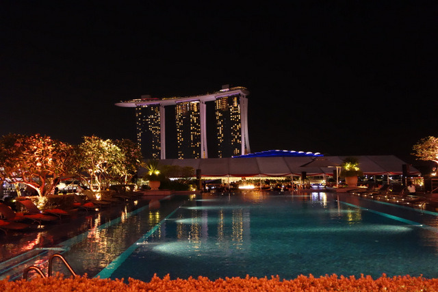 这次住在 The Fullerton Bay Hotel Singapore,与金沙隔着海湾对望。房间是海景房,窗外就是海水,每天清晨躺在床上看着撒满阳光的海面波光粼粼,夜晚看着对面金沙变幻着的镭射灯光,真是太有度假感觉了。