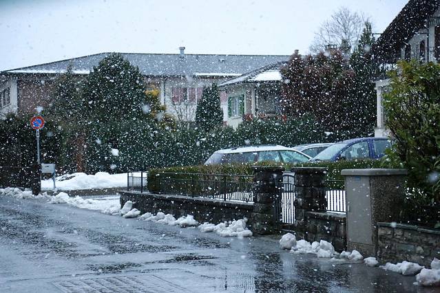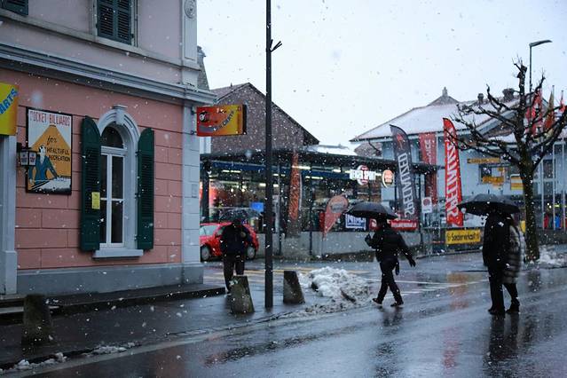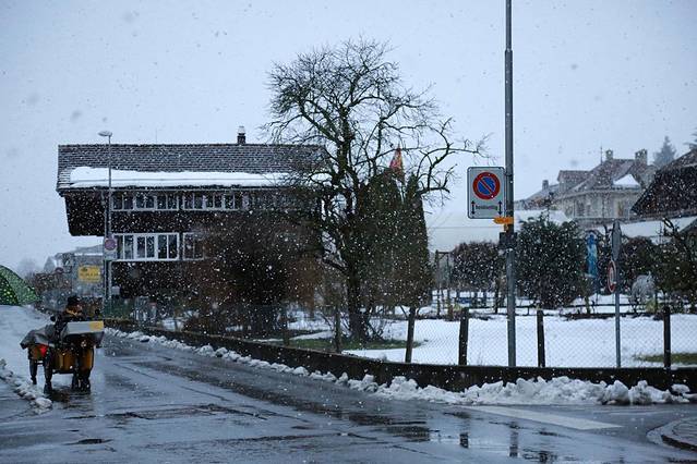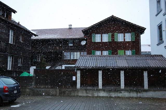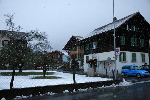 在因特拉肯小镇下起大雪