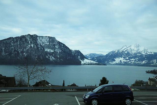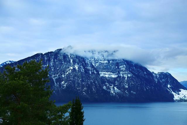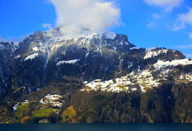 琉森湖边的雪山