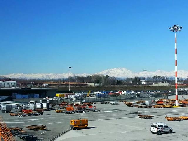 意大利米兰机场外面望眼出去雪山群好壮观。
