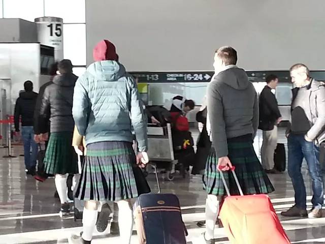 米兰机场穿裙子的外国人。