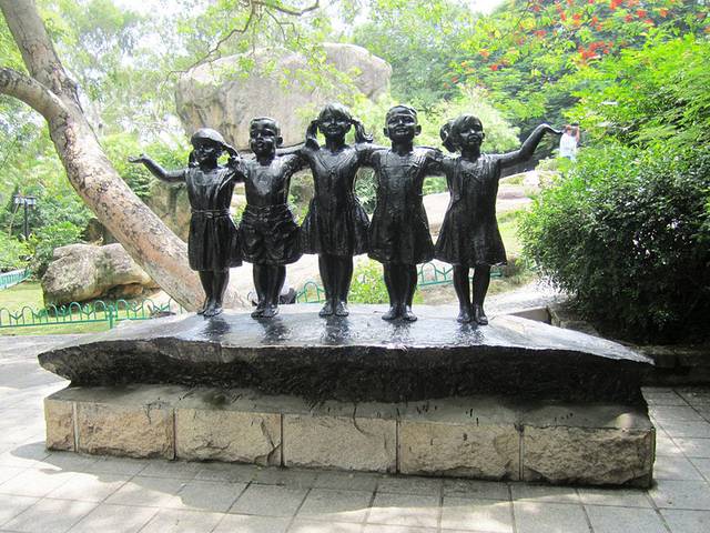 这组雕塑可爱,宣誓团结互助吗?