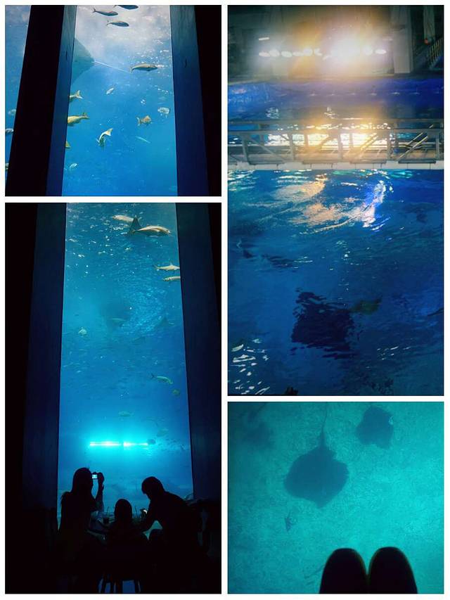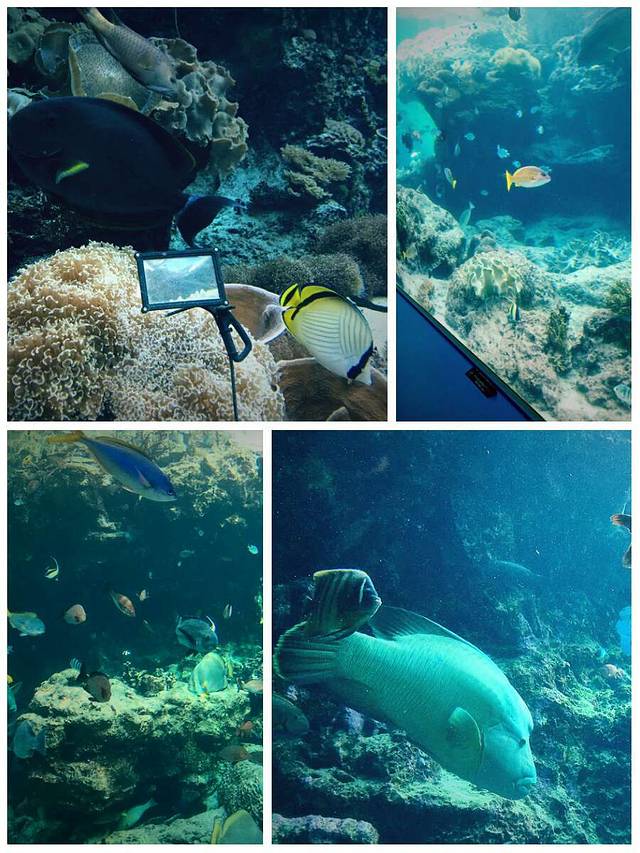 巨大的玻璃墙后面是自由自在游弋的各种海洋生物,其中还包括庞大的鲸鲨,想象一下你站在水槽前,面前时这些庞大的生物游来游去,也会不由得震撼吧。