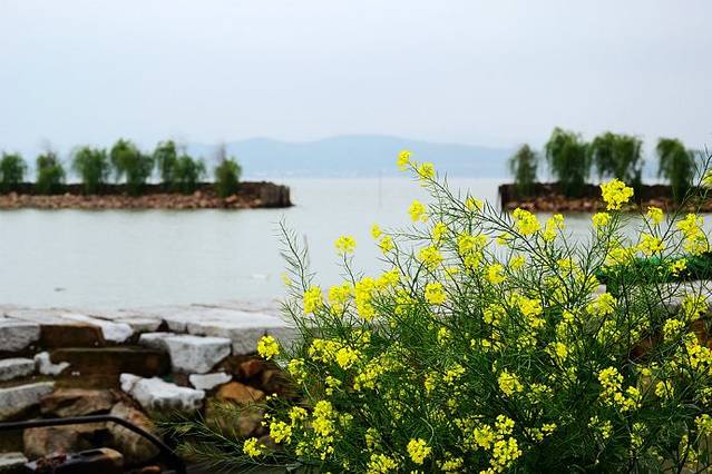 坐快艇上岛,太湖碧波万顷,迎风拂面的感觉煞是爽快。但春天还是较冷,建议多穿件外套。