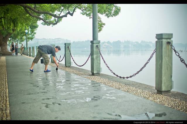 晨练的书法者