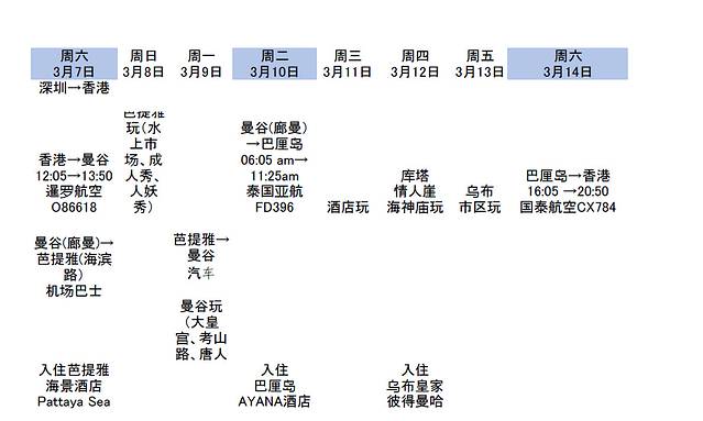 14年11月婚礼,因为各种工作的原因,一直没有去蜜月,直到今年3月,想到再不去蜜月,婚假都要结束了,所以,决定来一场说走就走的旅行,从决定去蜜月到启程,总共1个星期的时间(真佩服我俩这种永远说走就走的精神,不论去哪,都做不到提前几个月准备TT)。1个星期决定了行程,芭提雅、曼谷、巴厘岛。去泰国主要是为了吃好吃的加上看人妖,想着去泰国玩得累了,就去巴厘岛的酒店睡觉,所以,行程就这么愉快地决定啦!