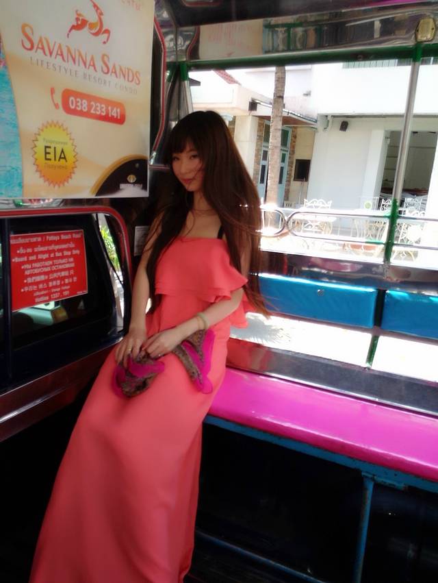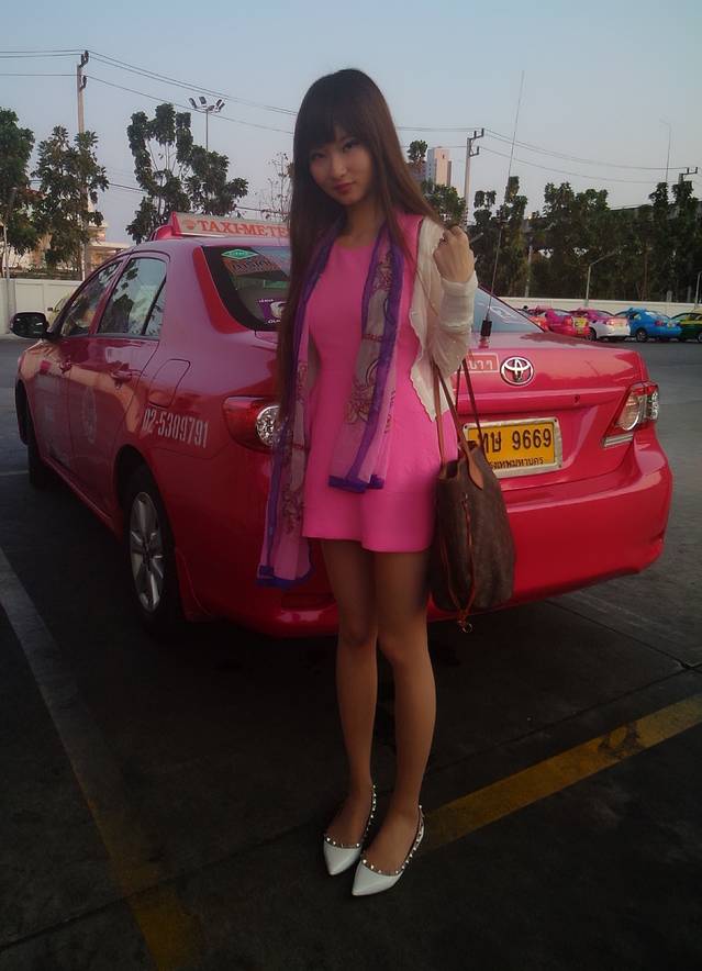 经过一个多小时的折腾,终于顺利入境。泰国的车真的太可爱了,粉色的的士真是深得我心,合照一张!