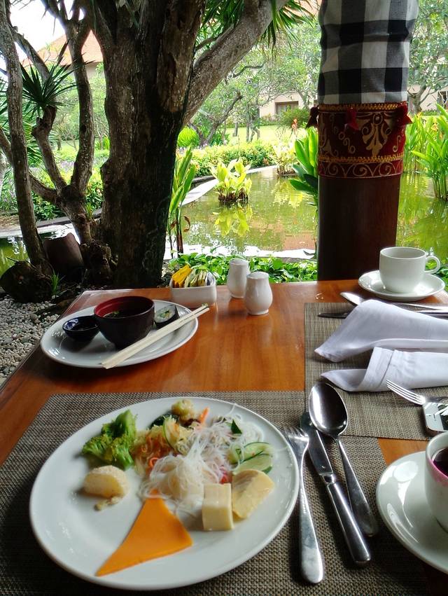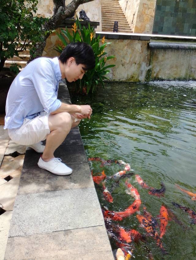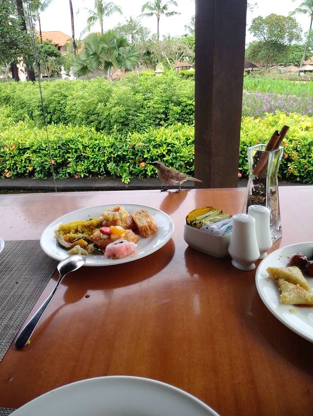 睡了个美美的觉,早上起来去餐厅吃自助早餐。餐厅食物种类很多,比国内的四海一家什么的要好很多,环境无敌,还能喂喂鱼,和小鸟做做游戏,非常贴近自然。