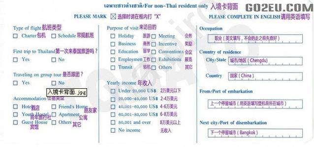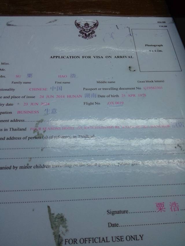 经过2个多小时的飞行,顺利抵达曼谷廊曼机场,这个是入境要填写的表格,当时我们换钱、填这个、以及照片有问题弄了好久。建议大家如果没泰铢,到了签证处,立刻去换钱,然后不要自己在国内照相了,直接在签证那儿照,最靠谱啦。