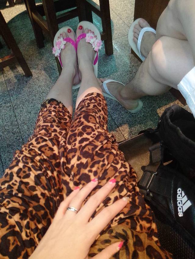 在机场等航班,这是我们买的拖鞋,嘿嘿