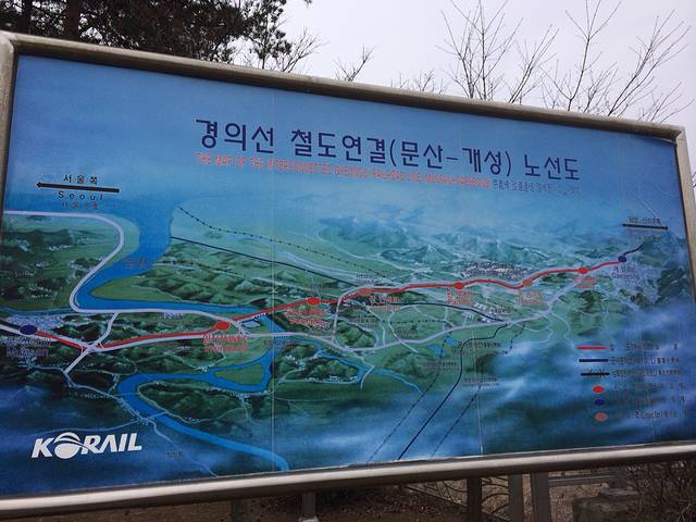 DMZ游览线路的第一个点~这是韩国为南北互通建设的火车站,站台已经建设的非常完善了,这也是韩国最靠近朝鲜的一个火车站点了,一切就绪只等投入使用了!