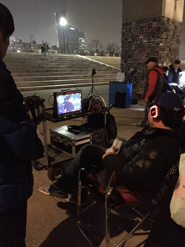 运气爆好!乐天出来都9点过了~去酒店旁边的汝矣岛看风景结果碰到KBS拍戏!!男女主不认识。。
