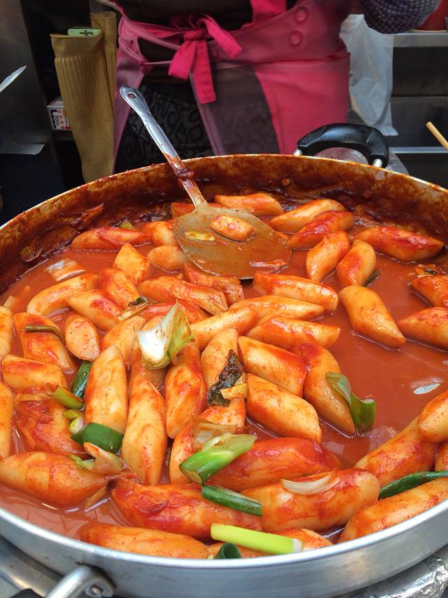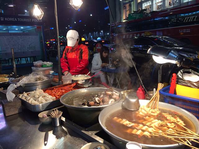 好在晚上有时间终于独自逛了明洞~吃了街边的年糕和粉肠~还有超长雪糕🍦