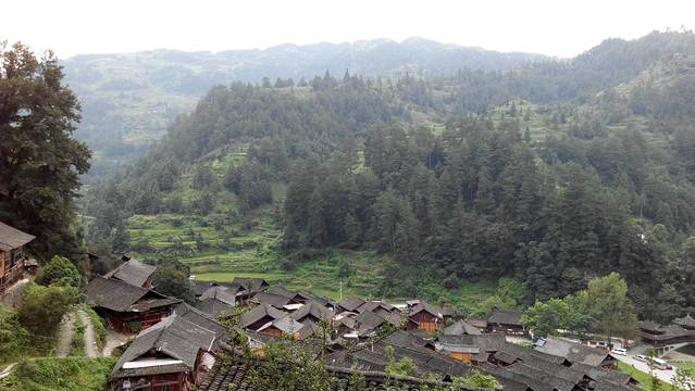 这是从我住的客栈拍下来的朗德上寨全景,我住的的客栈位于山顶,走上去几分钟,我的行李多有点累,但是景色真的没得说。跟老板交流了下,由于他们家在山顶知道的人比较少,我建议他们在网上卖房间现在他们家好像在几家旅游网站可以订了,好像叫全景客栈,为什么这么推荐!!!还有就是他们家的菜好吃!!!!!!