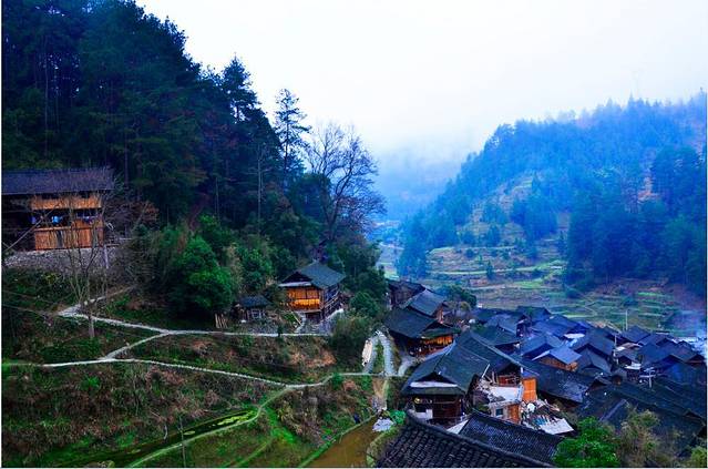 朗德上寨是一个很宁静的苗族小村落,和已经高度旅游开发的西江苗寨相比更多一份纯粹和小数民族的淳朴,景色也更原生态,和西江的晚上万家灯火不同,这里的晚上只有零零星星的黯淡油灯,几乎看不到什么,这里住宿晚上就跟随当地村民一起日落而息,没有酒吧舞台夜生活,但是睡醒的早上打开窗户外面的美景绝对值回票价。