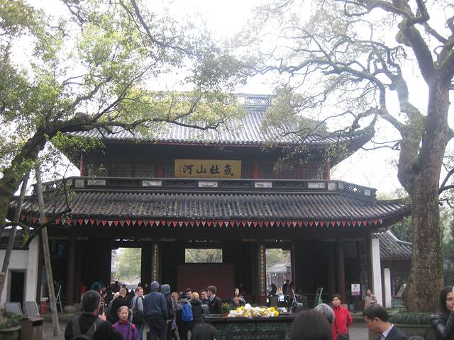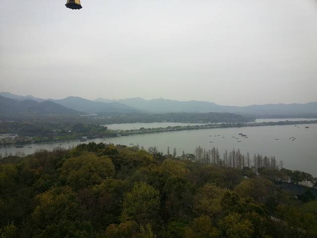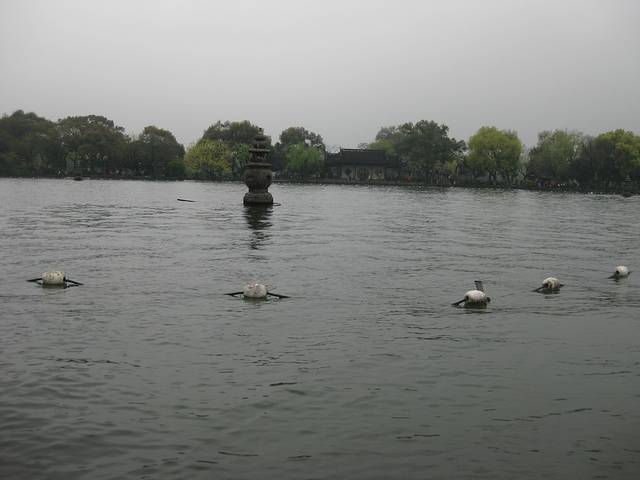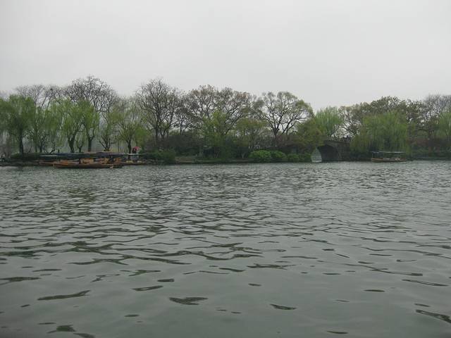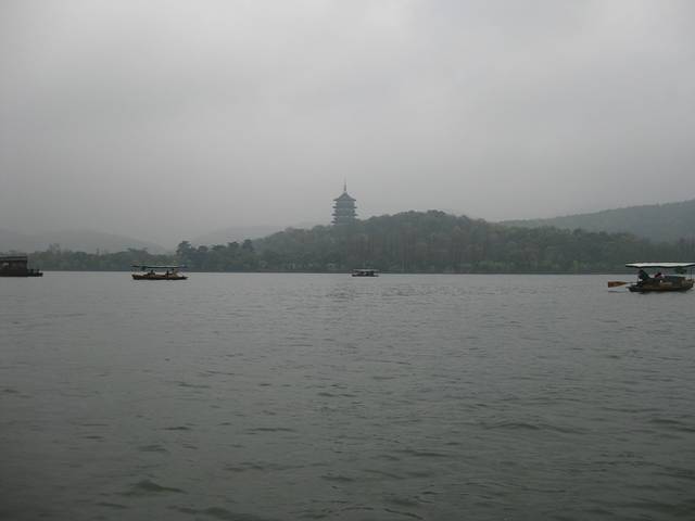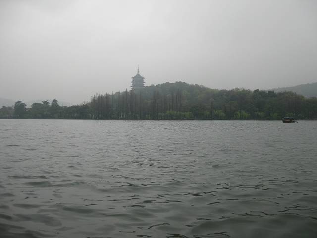 第三天继续游西湖,早上查了导航从住的地方步行二十分钟就能到西湖边,于是决定走着去,杭州的空气真是没的说,让我这个在雾霾里生活的北方人彻底的洗了一遍肺,步行到雷峰塔景区,沿着步道再走五分钟就到了苏堤,整个西湖景区是免费的,只不过有几个地方要门票例如岳王庙和雷峰塔,在苏堤租了一艘小船,150元,泛舟西湖,如果天气晴朗,景色肯定非常好,不过雨中游更是别有一番滋味,划船大哥的文采不错,描写西湖的各种诗句背的很熟,可惜季节不好,接天莲叶无穷碧、映日荷花别样红的景色看不到,划船到三潭印月照了相,回程直接停在花港观鱼,因为我要去拜会一位我心目中的英雄——于谦,顺着花港观鱼公园出来,横穿过杨公堤再走五分钟就到了于谦祠。这位挽救黎民百姓于水火、拯救国家于危亡、两袖清风却又含冤而死的一代英杰就长眠在这里,静静地俯视着这里的芸芸众生。有兴趣的朋友真的应该去看看。参观完之后顺着山路走了十分钟,来到一家叫绿茶的餐厅,人超级多,天津的朋友去过外婆家的就知道那场景了,不过价格很合适,人均50元就可以吃的很好,而且就在龙井村的边上,窗外是水塘和茶田,很漂亮的。饭后出来门口就是公交车,直到岳王庙,来西湖不去拜拜岳王爷就跟没来一样,“赖有岳于双少保,人间始觉重西湖”,岳飞的事迹就不多说了,不知道的劝你回家多读读书吧。从岳王庙出来就是苏堤的另一头了,沿着湖边走就可以到孤山和白堤了,中间能看到杭州最有名的饭店——楼外楼,土豪朋友们可以去吃吃看,沿着白堤走到断桥,顺着湖边观景小道走就来到了音乐喷泉,晚上音乐喷泉值得一看。