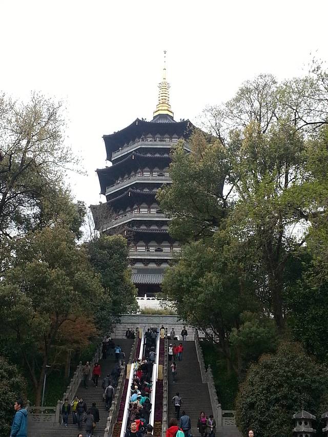 第二天旅行,第一站西溪湿地,整个西溪湿地面积非常大,主要游览是在东区,从大门进去走不了多远就可以坐船,电瓶船和人工摇橹船,摇橹船按时间收费一小时一百元,比较适合土豪,普通家庭还是坐电瓶船合适,湿地内主要有四个景点,门票上都有,船靠景点码头,上岸参观后再从上船码头出来,我去的那天上午晴空万里,而且空气极好,湿地内的很多景点都很适合拍照留念的,午饭也是在湿地内解决的,很多小店卖当地小吃,推荐大家尝尝,如果是土豪的话可以在里面找一家很有特色饭店吃一次。东区分两块,核心水道玩下来差不多要五个小时,另外一块没去,据说没什么意思,主要都是商业街和湿地博物馆。从湿地公园出来大约下午两点钟,打车直奔雷峰塔,雷峰塔是新修的,老的雷峰塔早就倒了(不知道的可以去看看鲁迅先生的文章),登到塔顶可以看见整个西湖,非常适合拍照。从雷峰塔出来,天开始下雨了,可时间还很早,于是决定去河坊街转转。河坊街有点类似于天津的古文化街,北京的前门大街,仿古建筑,一排排小店卖杭州特色的纪念品,小吃等等,让我郁闷的是刚到那雨就下大了,只能加快脚步,周遭景色也都无心留意了,快步走了五分钟找到一家名叫皇饭儿的饭店,吃了一顿特色杭州菜——醋鱼、东坡肉,不做广告,味道真的不错。吃完饭出来准备回客栈,这时就发现了先前提到的杭州最大的问题——公共交通太不方便,公交车差不多都收车了,出租基本上没有,我们辗转倒了三趟车才找到一个回客栈的线路,很幸运这趟车九点收车,简直是杭州公交的奇葩。