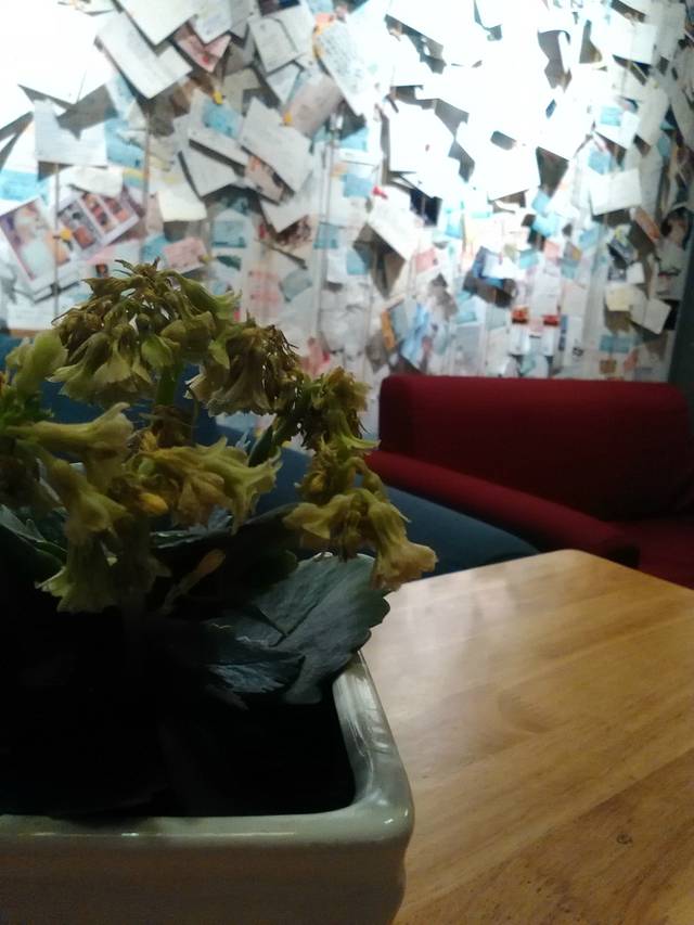 看点评说这家店的老板很有脾气,于是跟闺蜜两个人又去找虐了,,点了盆栽奶茶跟玫瑰牛奶,都是粉粉冲泡,30一杯,,虽然贵,但是可以理解啦~老板看到有人在他唱歌的时候讲话会停下来瞪他们,直到他们去二楼,服务员也会在第一时间去小声提醒顾客不要讲话,要聊天滚去二楼,我是觉得老板唱歌真心一般般然后还很吵,干嘛非要拿个麦唱嘞?本来酒吧就小真心没必要,竟然还有人专程过来听的如痴如醉,可能我这个人人生比较苍白把,不能产生共鸣。。觉得老板实在太吵,饮料又迟迟不上想走,但是看老板皱眉怕怕的,又不敢中途上二楼,只能默默忍受了一首歌的时间赶紧逃上二楼。。二楼用书架围城,翻看书,全是灰,书架上也全是灰脏得要死,书也没有好好放好,都是乱堆,大多数是2012年的不知道什么破书。我觉得,人有脾气固然是个性的一种表现,但是毕竟开门做生意,给顾客一个干净舒适的环境不应该很重要么?还有他们家饮料跟白开水一样,什么味道都没有。。建议就在门口看看就好,就不要去消费了,我觉得老板一点都没有想要跟其他人分享的样子,活在自己的世界里,不喜欢这样的。。。