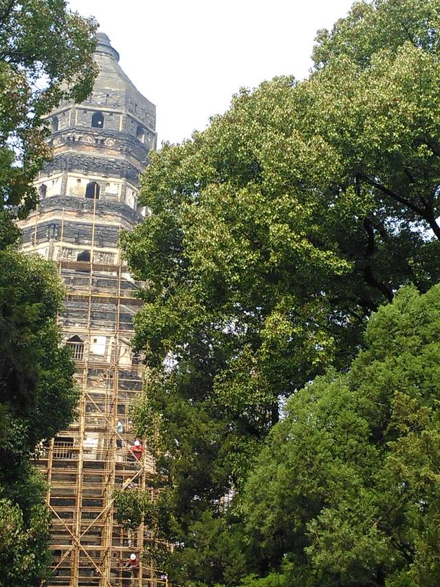 由于是第一天到苏州,力气比较多,又想多逛逛山塘街,于是我们决定步行去虎丘,虽然要走3.5公里。。沿着山塘街最热闹的街区,其实是菜市一条街,,人超多,大多是当地居民,可能是我们去的太早吧。。虎丘真的就只是土丘,不高,因为还没到旺季,我们半路跟到了免费导游,因为最近在看盗墓笔记,随意对于剑池下面的陵墓比较感兴趣,不过因为技术原因,夫差他爸的墓还不能开,否则小斜塔会塌。我感觉虎丘其实就是一个大公园,没什么好逛的,没什么看点。我去的时候小斜塔正在修正,所以更是没什么好看的了。。