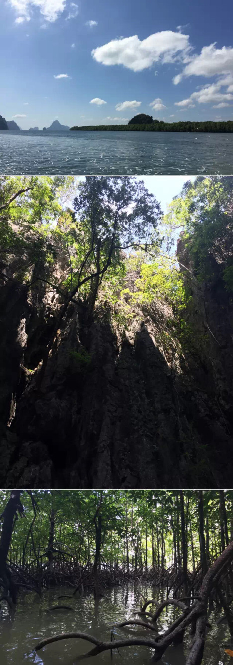 攀牙湾是普吉岛上最为著名的景点之一,素有“小桂林”之称。波光粼粼的淡绿色的海面上,石灰岩奇峰怪石星罗棋布,沿海可以欣赏连绵不绝的海上红树林。别小看这些红树林,它们是保护沿海陆地的卫士。攀牙湾最著名的岛是007岛(占士邦岛),因拍摄电影《007》而闻名。在这里可以探访岛上岩洞和水上渔村,也可以泛舟海湾,体验皮划艇,还能骑大象、看猴子表演。喜欢考古的同学可以研究下石灰岩构成的岩洞,洞里除了有珍贵的燕窝外,据说岩壁上还刻画着古画,美丽而神秘。