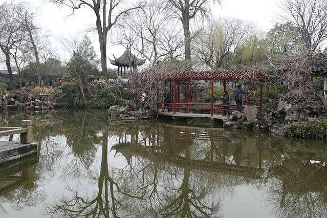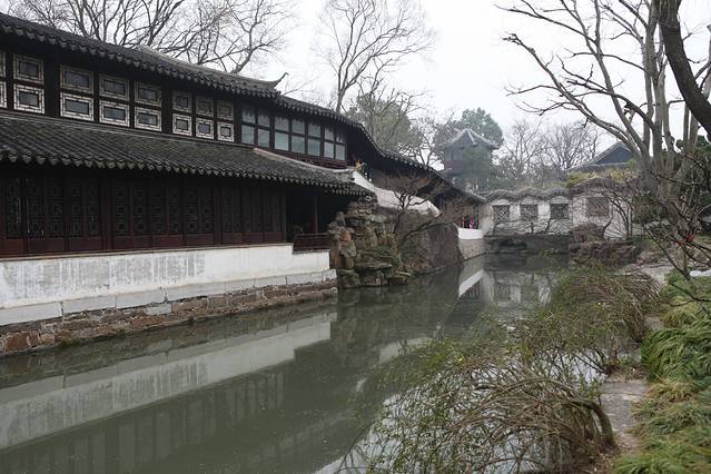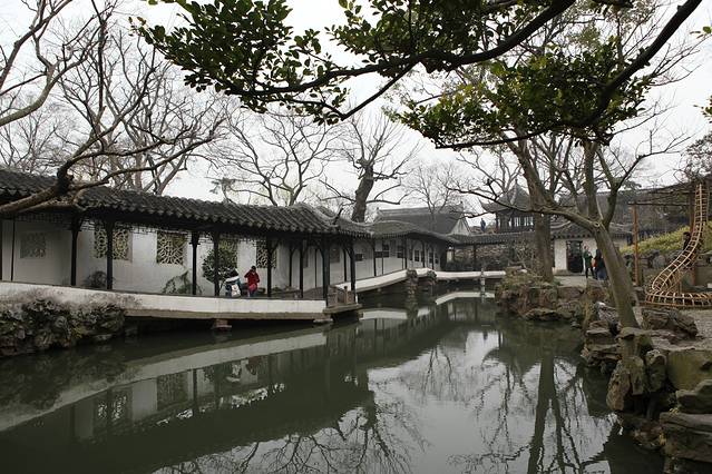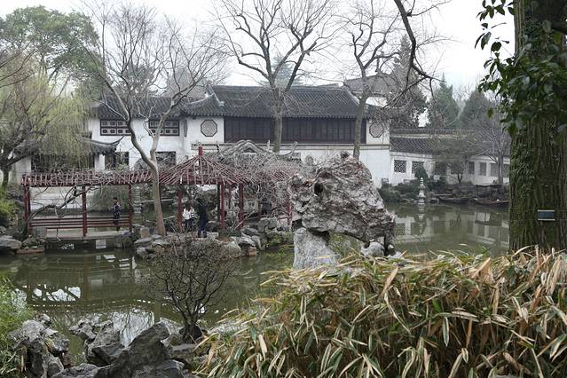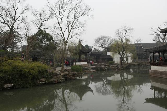原来计划今天的行程是拙政园-苏州博物馆-狮子林-枫桥景区,然后拙政园门口碰到好多一日游团。当导游来劝说参团的时候,其实一开始我是拒绝的,因为我有自己的行程,不能你说参团就参团啊,导游的一日游路线拙政园-唐寅园-游船-丝绸馆90/人,拙政园门票淡季70/人,感觉还不错,但是这样子就不能去狮子林和枫桥景区了,据说枫桥景区是因张继的那首《枫桥夜泊》名声大震,后来开发的,寒山寺也是很小很小,于是我们决定放弃这个景点,参加了一日游的团。不得不说,苏州的一日游相当成熟,仅通过一个小小的商标就能带你走完整条路线,而且逛拙政园的时间不受限制,可以随时上大巴,随时走,总体还不错。