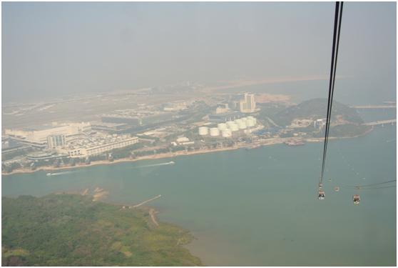 而且今天晴空万里,风和日丽,缆车也很平稳,可以远眺大佛和机场,脚底下就是一片汪洋,小孩子和老人家都特别高兴,全家人都在不停拍照,我感觉这次真没选错地方!