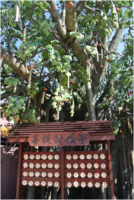 街道两边的建筑都很有特色,譬如拱桥和具有中国特色的亭楼设计,还有一个菩提许愿亭,可以在附近购买许愿木牌,把自己的心愿写上去,挂在许愿亭里,传说在菩提树下的“菩提许愿亭”许愿,许下的愿望都会成真呢!