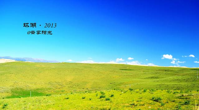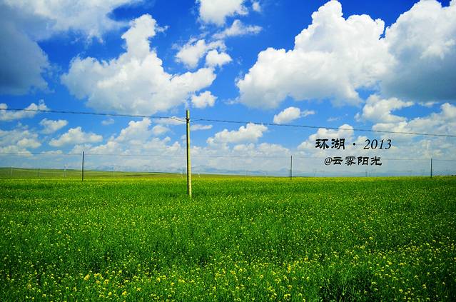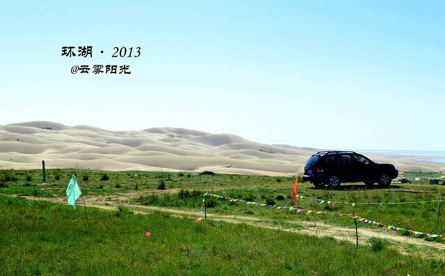 说说第一天的风景吧。看攻略和游记看到眼花的我,对于传说中第一天景色一般已有心里准备,于是就一直忍住拍照的欲望没有过多的拍照。但我想说,既有大草原又有沙漠偶尔还有小片油菜花伴随着蓝天白云难道还不够美么!?其实真的还是不错的,尤其那段沙漠地段,环湖路上只有第一天有沙漠,所以拿出一些时间拍照还是值得的,但我想说,后面几天的风景,比这更美。