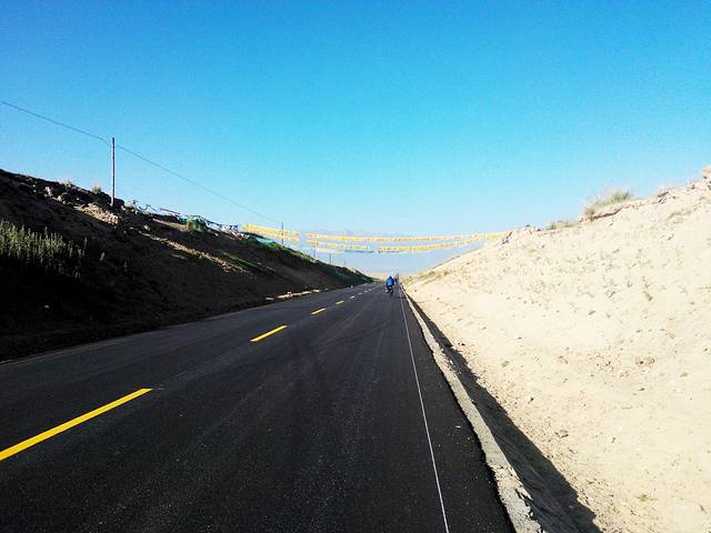 此时我身边,空无一人。其实,这四天的绝大多数时间,我都处于领骑状态,领先Q同学与Z同学的第二集团二十来分钟,领先Y同学就更多了。一瞬间,我感觉天都塌了一样,路边的风景也成了煎熬,傍晚的阳光似乎也给外炙热。搭车回西海的念头在我脑海里一闪而过,真的只是一闪,就被我立刻否定了,我不要为自己留遗憾——我选择了