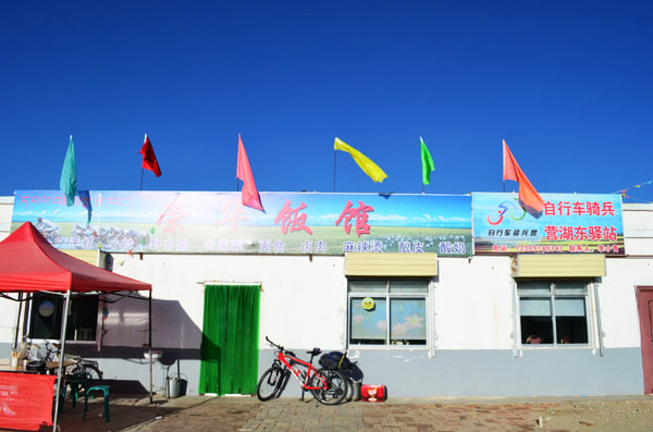 是一家家庭小店,可吃饭可住宿,但是,没!厕!所!自然更无法洗澡,但谁让我们没骑到条件更好的151基地呢,忍着吧!好在店家人非常不错,还切西瓜给我们吃,晚上给我们烧水洗漱和喝水。晚饭人均30,住宿是大通铺,我们四个人一屋,有窗,每人30元,便宜吧。