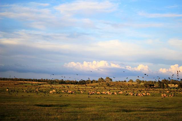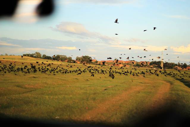 回程看到,一群回家的牛和羊激起一群乌鸦,乌鸦飞起,场景壮观!