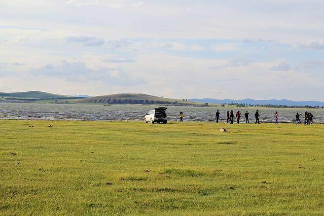 本来是打算是滦河的,但人暴多,于是临时改路线直奔天鹅湖,远远就看见了一望无际的草原与湖水,太美了,我们真的惊呆了,因为担心车底盘过低,只开两辆SUV来回接人过去,小车就停在远处,为了活动筋骨,我选择走路过去,一边走一边呼吸新鲜空气一边感慨,太美了,太舒服了,同事们说,如果天天在这样的环境下办公该有多好啊!