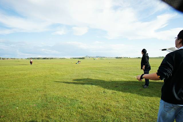 草原上放风筝真是一件美好的事情,脚踩广阔草原,头顶蓝天白云,惬意惬意!