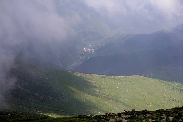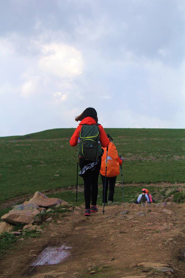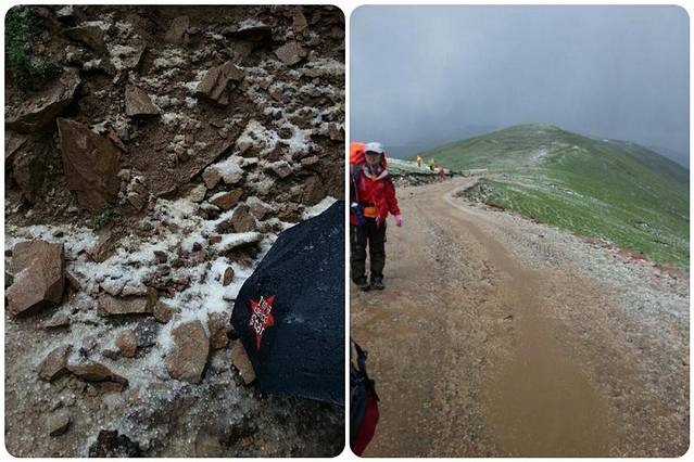 休整好开始下山,准备向中台进发,下山是我最喜欢的,轻松的不能再轻松,一度可以跑起来,但还是很危险的。没走多久就开始下雨,冷风嗖嗖的,裤子都湿透了,还真是有点冷。但最艰苦的是开始下冰雹,雨加冰雹,可想而知,小小的,打在手上还真是有点疼。
