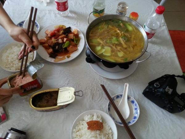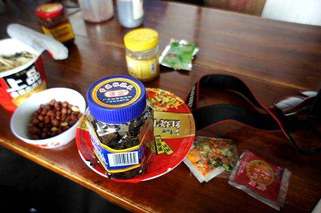 为了给庙里节省粮食,我们自带杯装方便面,只要有开水就好。我们还吃了点花生米、橄榄菜,自带的鸡蛋尽量不要吃,肉就更不能吃了!