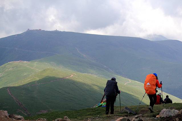 正好有几个大哥哥看着很有经验,一问对方也是去北台的,我们就决定跟着他们一起走,聊起来才知道,原来他们已经去完东台回来了,真是厉害!其中有一位很有经验的大家尊称为大师,我们也当然不能放过这个机会,跟大师问了好多问题呢!今天的计划:北台-中台-西台-狮子窝-台怀镇(早的话也可以先去东台再北台)