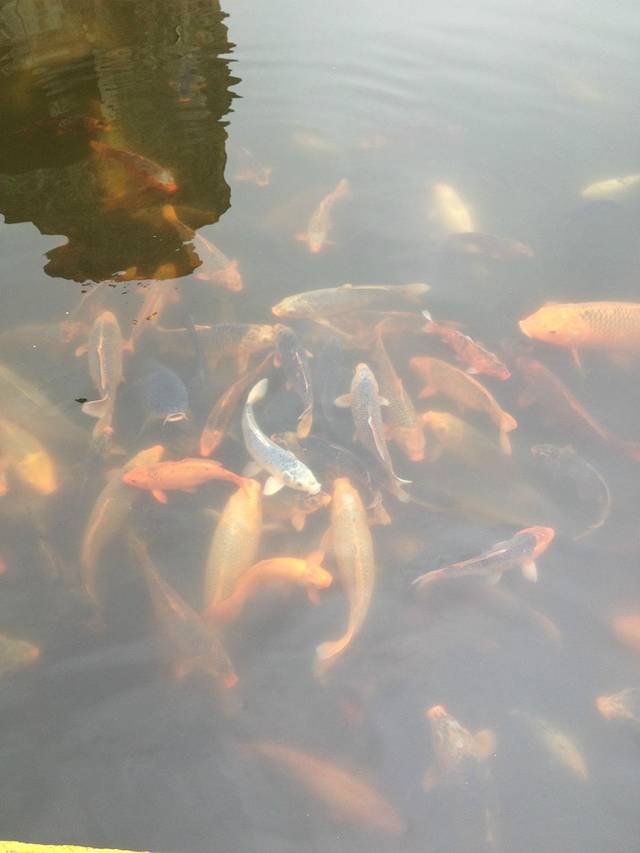 大佛下放身池中的鱼超级大。据说这里的池水究竟有多深,至今无人知晓