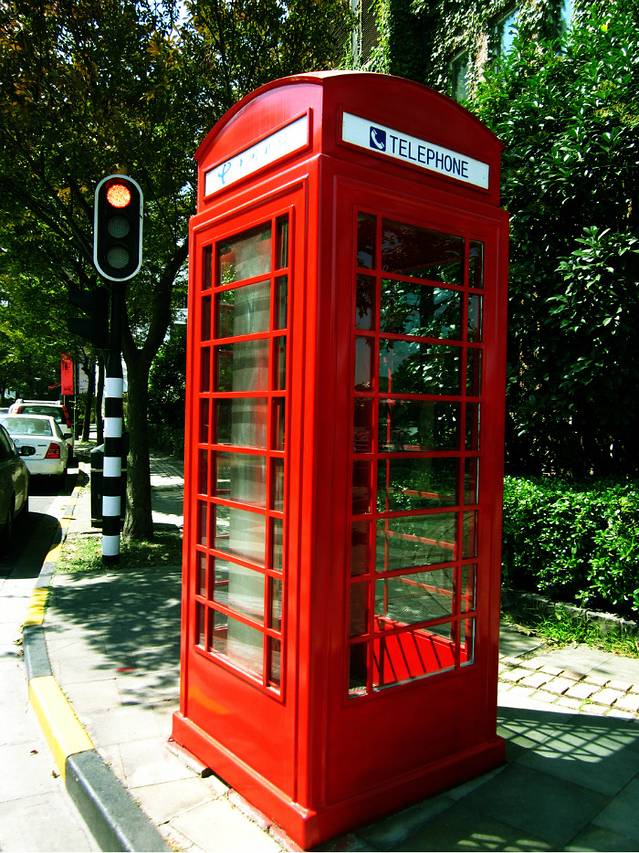 里面好些个电话亭,话说小镇里保安都是红色衬衫