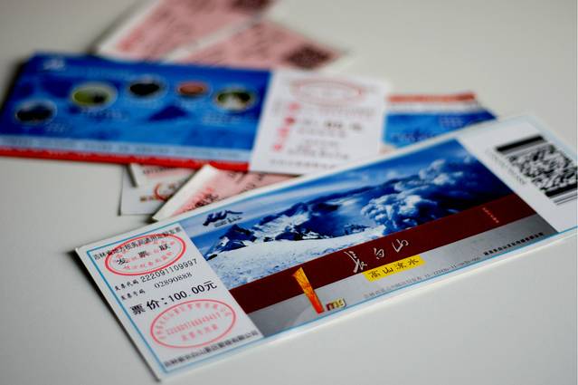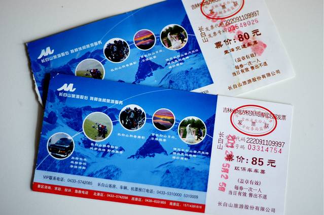 买门票的时候好像还要买环保车的票,门票100元(不含保险),环保车80元,进大门后等候环保车,因游人少,不需排队直接上车,坐满就发车了。环保车会直接开到另一个停车场,从那里需要再买票坐越野车或者是微型面包上天池。