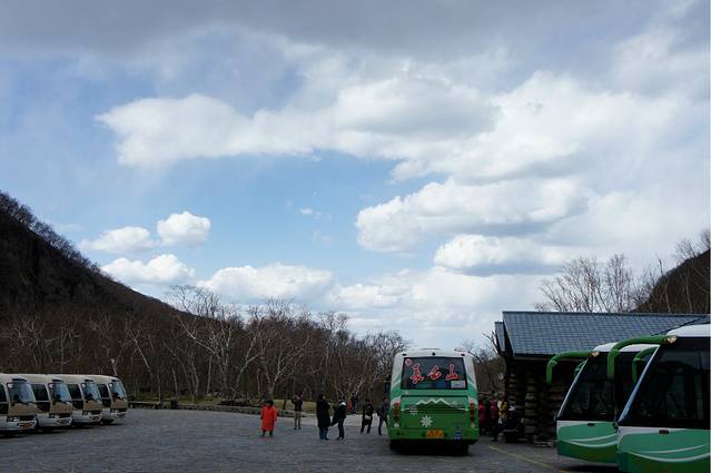 从上白山下来,准备坐越野车去参观其他景点,说实话,我真的是被冻下来的,真心扛不住,有这个季节来的同学还是多保暖,如果没带厚外套,就租一个吧,身体要紧。当然也有不怕冷的,光着膀子在上面拍照,偶是真心佩服!越野车又一路彪悍的开了下来,下车就是“绿渊潭”的入口,停车场有一个大食堂,很多跟团的游客都在这里用膳,偶这个人嘛,在吃上比较特性,认为景区的餐饭肯定不好吃,所以也没有兴趣,留着肚子等着去吃温泉鸡蛋。