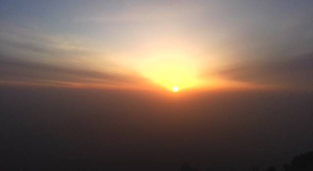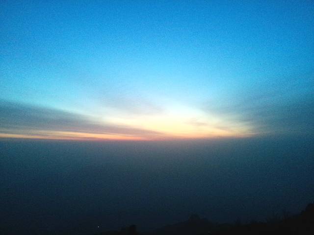 12点13分,一行14人开始从红门登泰山,第一次夜登,而且还是一群驴友,很不错的感觉。一开始的时候,人不是很多,我们都带了手电,因为泰山有些路段是没有灯光的,必须要用手电来确保行走时的安全,我们保持着行走40分钟,约莫休息5分钟的节奏夜登泰山,这个根据正常人的登山过程,如果太快,身体就会吃不消,大家还是保持体力登泰山吧。当登到500米的时候,也就是三分之一的高度,花费了一个小时,因为登泰山的路是曲折的,到最后,步速越来越慢。中天门是很热闹的,大家在此补充体力(还是希望登山自带零食,山上相对于市区里,价格还是有有些差别的)。不得不说的就是十八盘,因为晚上的原因,大家只知道前面就快到南天门了,不要一味的往前赶,因为大家的体力都不是很足,这里人很多,很多人都席地而坐,走的时候注意安全是重中之重,就在这十八盘,由于大家的体力是不同的,最后,一行人只剩下是的4个,山顶的风很大(建议还是在南天门租大衣),再往上就是玉皇顶和观日峰,两处都是观日出的好地方,人真的很多,我们在观日峰找了个地方坐下来休息。从泰山山顶往下看,可以看到的是市区的灯火繁荣,一派美美的景象。大等到到5点40多的时候,人群开始活动起来,黎明也开始了,这个时候的天空是淡蓝色的,幸运的是这样的天气可以看到日出,却没有云海,人们慢慢的等待着日出,大概6点10分左右的时候,太阳慢慢的从云层中探出头来,整个日出美不胜收,日出结束之后,人群涌动,然后去了玉皇庙参观,最重要的是为了找到人民币上面的刻有“五岳独尊”的时候找了一些时间,就在从观日峰到玉皇庙的台阶上,很多人在此选择照相留恋,建议大家排队等候。最后因为赶时间,坐的缆车,从南天门到中天门,然后坐旅游车到达天外村,然后乘车到客栈。