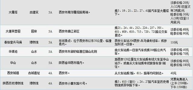 这是几个主要景点的价格表,是截图,可能传上来不够清晰,望见谅哇!