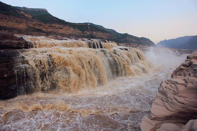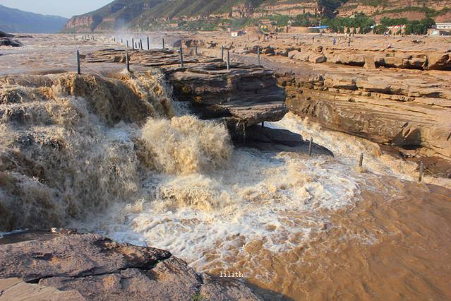 接着下午我们就去了黄河壶口瀑布,车开了一个多小时吧。壶口瀑布有机会一定要去看。虽说不如黄果树瀑布大型,但它是最大的金色瀑布。站在黄河边,感受涛涛黄河水,你会有种人类是那么渺小,一切烦恼事情都那么无所谓,只愿把身心都托付到这滚滚黄河水中,一泄千里。