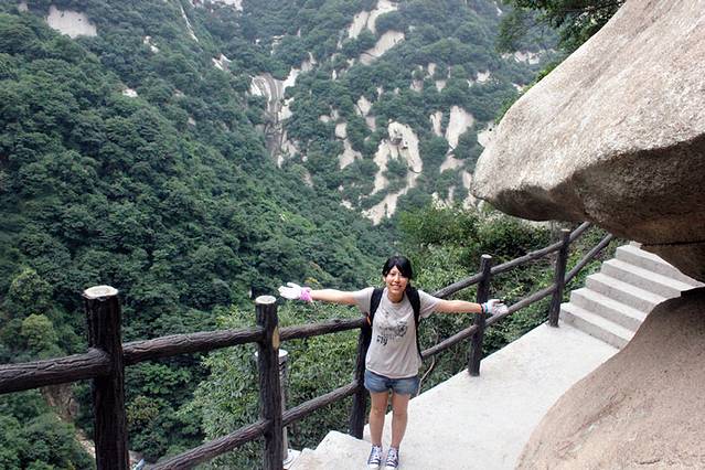 开始爬山,我们走的古道,一路爬上去的,爬到北峰用了4个多小时。一般可以坐索道到北峰,然后从那边再坐下山。我们是北峰继继续往上爬,经过中峰,去东峰,南峰,然后从西峰坐索道下去的,全程爬到下午5点,非常累,当然很有成就感。