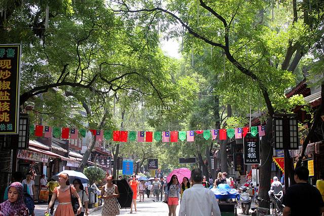 回民街就在鼓楼后面。由于我们到西安的第二天一早要订旅行社,所以我们一早就去了回民街,那边好几个旅行社。不过尽量还是跟有门面大型点的,这样比较安全。后来,我们有天晚上又来这吃饭来的。回民街好多美食。所以来西安不要急着来鼓楼钟楼和回民街,你可以抽吃饭的时间点来。正好享受美食也正好看一下风景。必吃项目:羊肉泡馍、biangbiang面等。