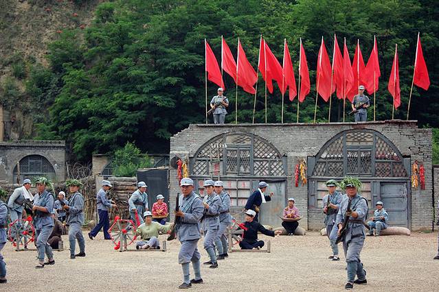 依次参观了延河、清凉山、王家坪和枣园革命根据地,观看了《延安保卫战》,300人阵容的真枪实弹表演,这个是自费的,150元一人。特邀全国著名导演陈维亚先生,大手笔倾力打造独一无二的当年延安保卫战史诗般的壮观场面。延安保卫战胜利后众人欢庆。百人腰鼓表演,很有延安风味。