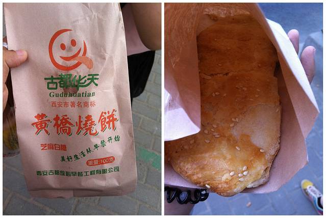 这种在我们那就是大饼。我觉得西安肯定有正宗的黄桥烧饼,不过我不知道在哪里,大家可以找着去尝尝,或者来扬州吃吧。嘿嘿。