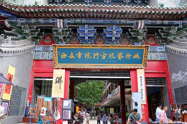 书院门就在南门城墙边,湘子门对面。是个卖字画、文房四宝、印章、饰品的地方,喜欢书法的人不可以错过。
