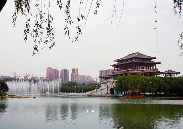 远处应该就是大明宫遗址了,右边估计有时候有表演!